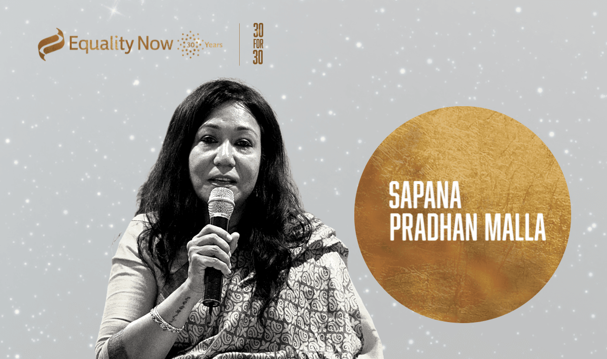 Sapana has helped to pave the way for a great deal of the progress Equality Now has achieved in South Asia over these past three decades. She is the founder of the Forum for Women, Law and Development (FWLD), which advocates for reforms to sex discriminatory laws in Nepal and has been a tremendous partner for Equality Now in the region.