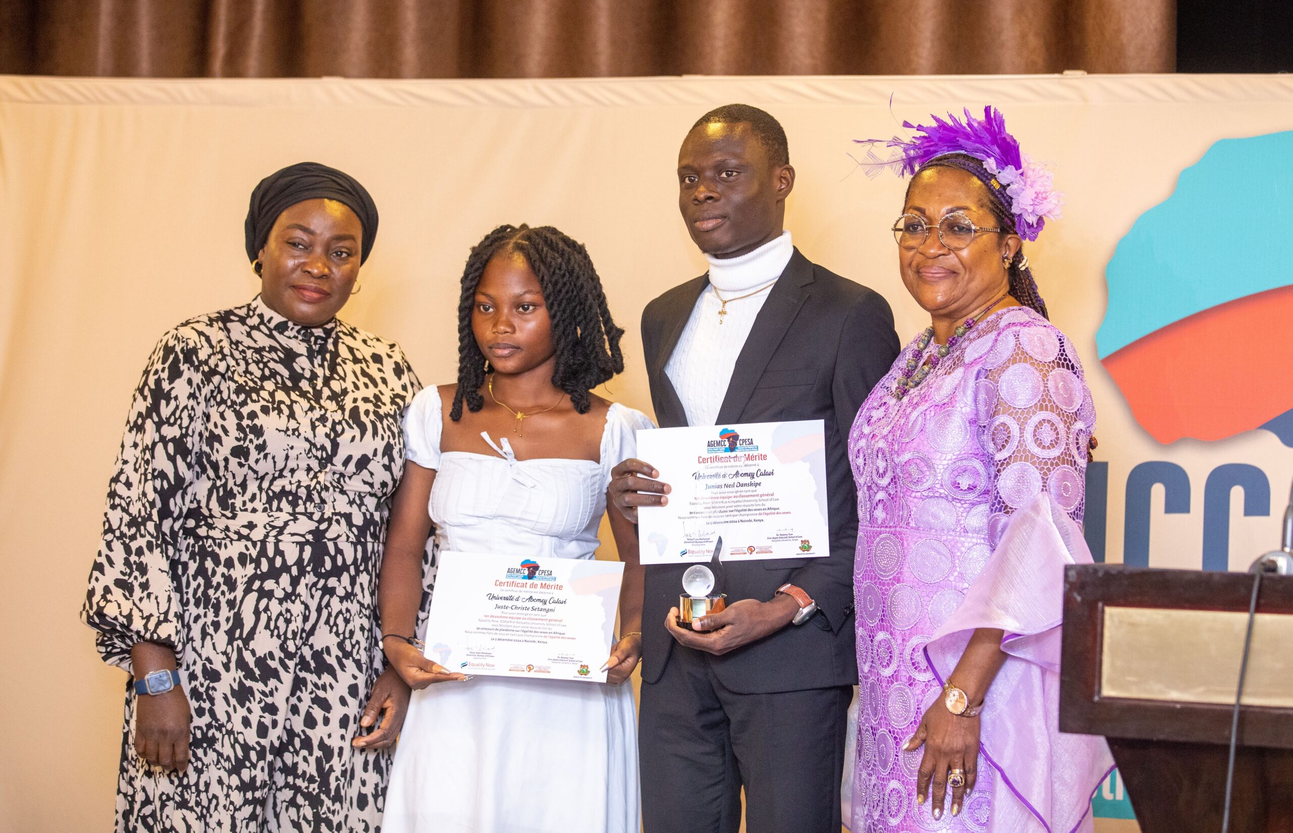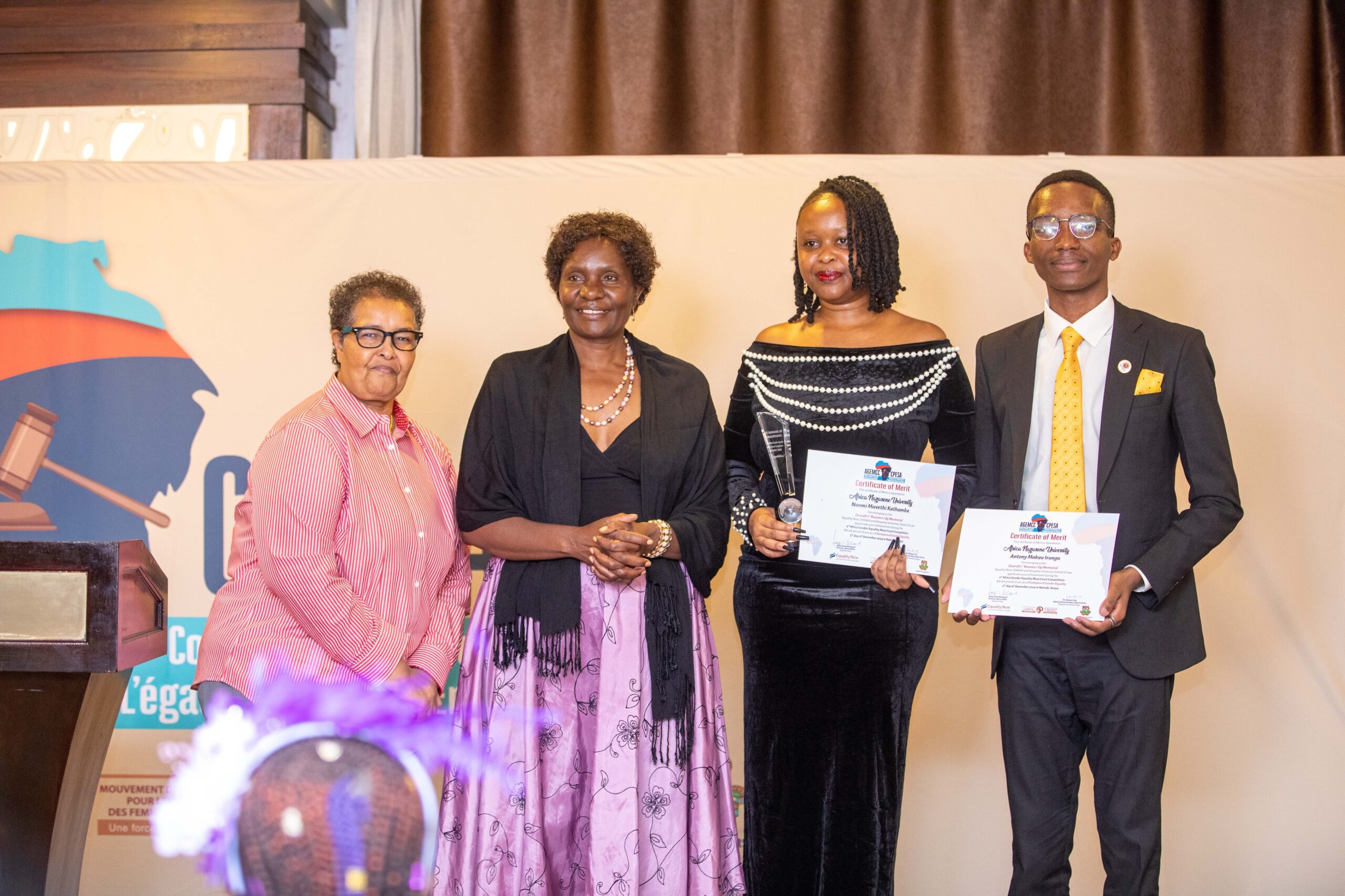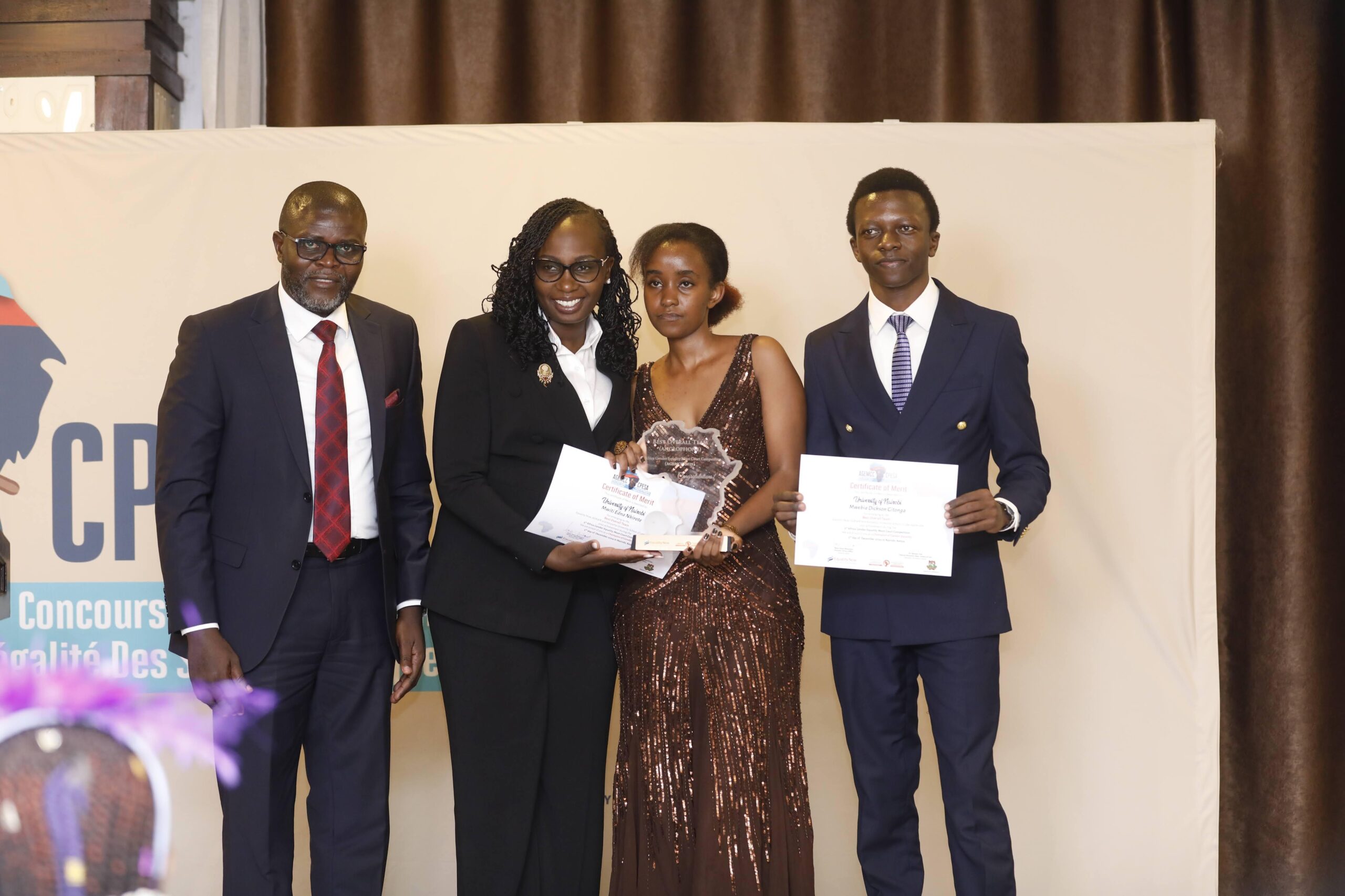The University of Nairobi, represented by Mwebia Dickson Gitonga and Mwiti Edna Nkirote from Kenya emerged as the best overall team, Anglophone while the title of best overall team Francophone was taken by Joël Minani and Nyabintu Zigabe Sarah of Université Officielle de Bukavu, Democratic Republic of Congo. The best orators in the 2024 edition were also recognised, with Mwebia Dickson Gitonga clinching the title for Best Orator, Francophone and Nyabintu Zigabe Sarah taking the Francophone component title. Naomi Kathamba from Africa Nazarene and Juste-Chris Setangni, Université Officielle de Bukavu were first runner up orators in the Anglophone and Francophone category respectively.