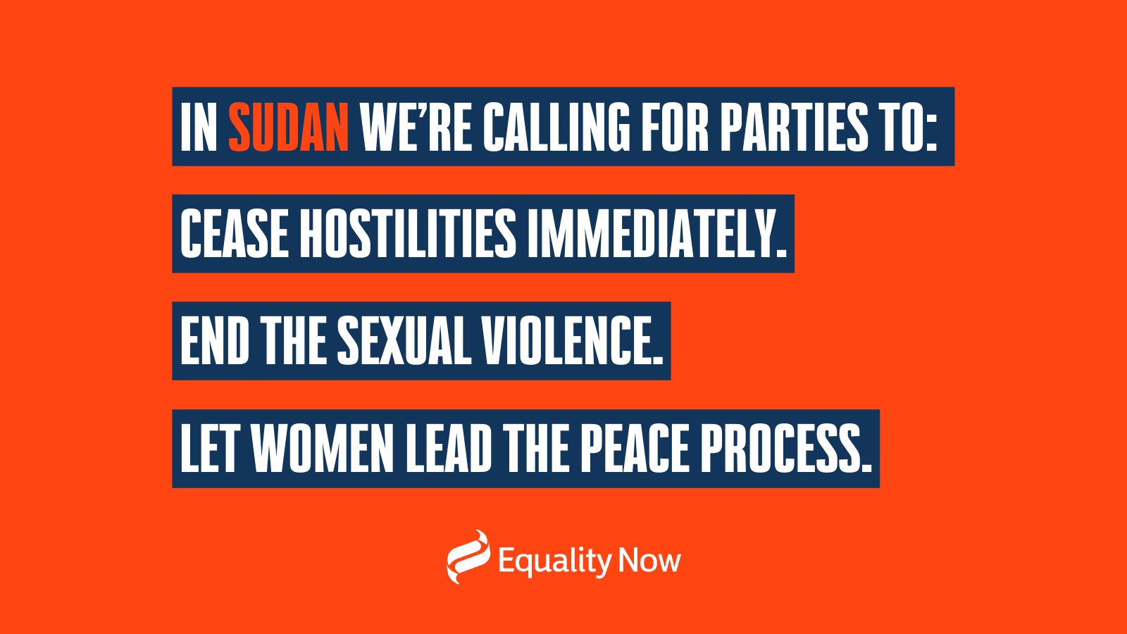 Equality Now stands in solidarity with the people of Sudan, particularly the women of Sudan and survivors of sexual violence, and we will continue to adv