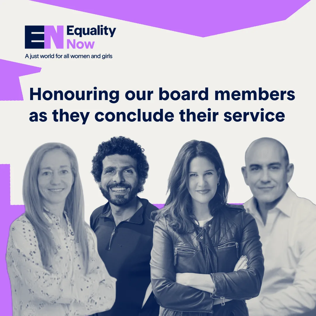 Equality Now extends its sincere thanks to several board members who are concluding their terms after years of dedicated service. Their leadership, expertise and commitment have helped strengthen the organisation and advance our mission to achieve legal equality for women and girls worldwide.
